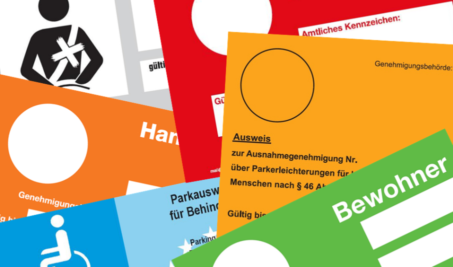 Im Bereich Parkerleichterungen haben wir alle Ausweise vom Bewohner- bis zum Sonderparkausweis in unserem Sortiment.