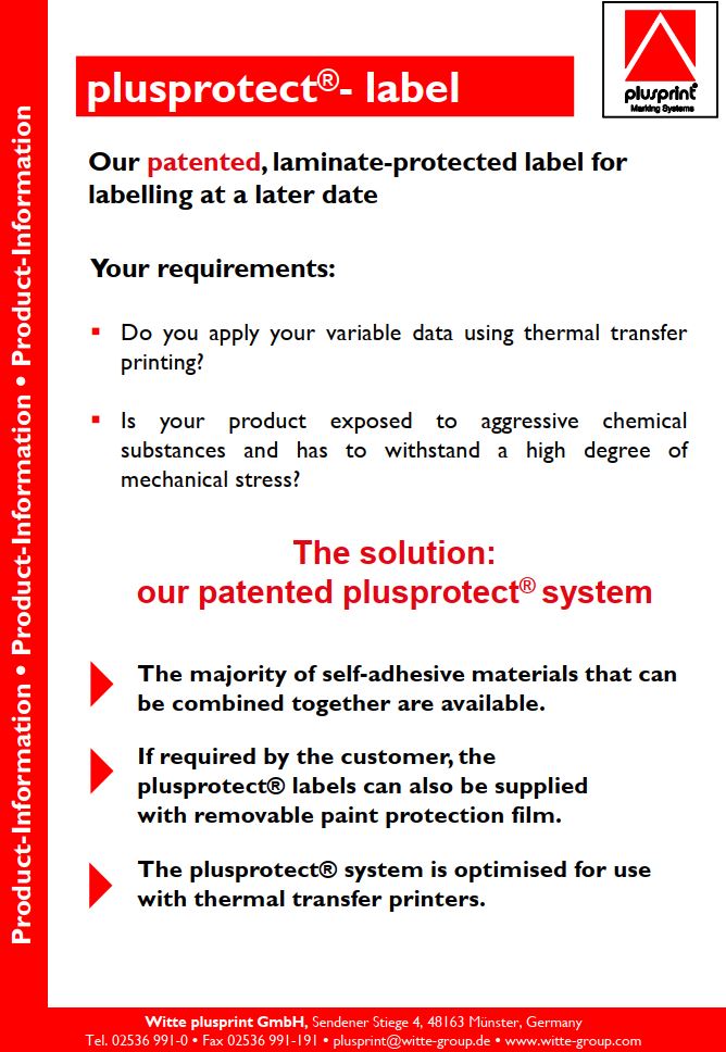 - The plusprotect® system is optimised for use with thermal transfer printers.