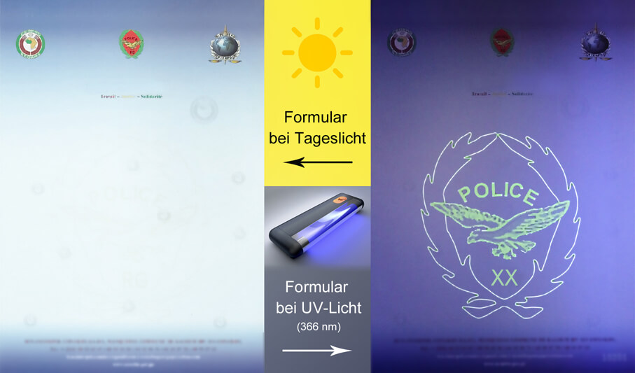 Der Missbrauch von Dokumenten durch unberechtigte Farbkopien nimmt ständig zu. Um widerrechtliche Kopien dieser Dokumente zu verhindern, stellen wir Ihre Dokumente mit verschiedenen Sicherheitsmerkmalen her.