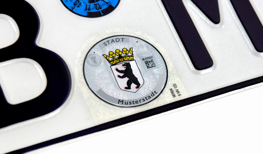 Stempelplakette I-KFZDie erste Stufe i-Kfz wird bereits seit dem 01.01.2015 umgesetzt. Unsere SecuRasta perfect online® -Stempelplaketten sind bereits auf vielen Kfz-Kennzeichenschildern zu sehen.