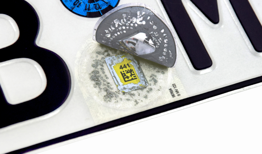 Die SecuRasta perfect online®-Plaketten bestehen aus zwei Teilen, einer hochbeständigen und blickdichten Folie, die gewährleistet, dass das Label bei zu festem Freirubbeln nicht beschädigt wird und ein unbefugtes Auslesen des Sicherheitscodes nicht möglich ist. Zusätzlich sind die Plaketten mit herstellerspezifischem Trenn-Effekt und UV-Merkmal ausgestattet, um die Fälschungssicherheit zu gewährleisten.