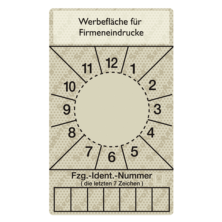 Grund: weiß, Druck: schwarz, gemäß StVZO § 58