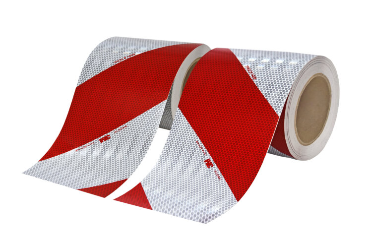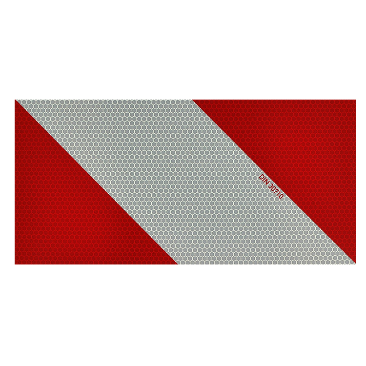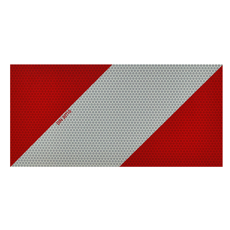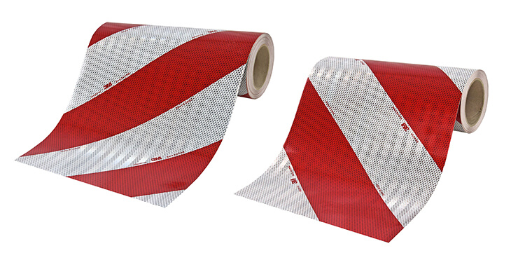 - Die Warnmarkierungsfolie, auf der die Streifen angebracht sind, muss reflektierend sein und mindestens der Rückstrahlklasse RA2 entsprechen. Dadurch ist sichergestellt, dass die Kennzeichnung auch bei Dunkelheit, Nebel und Regen gut erkennbar ist. Unterschiedliche Folienarten auf demselben Fahrzeug sind nicht zulässig.